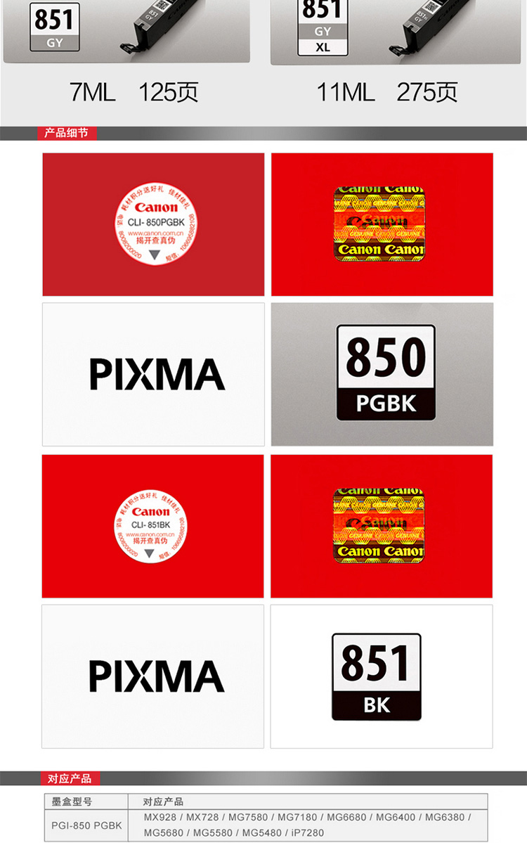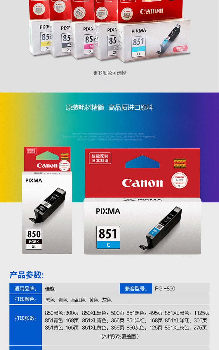 佳能 CLI-851C 墨盒 7ml 青色