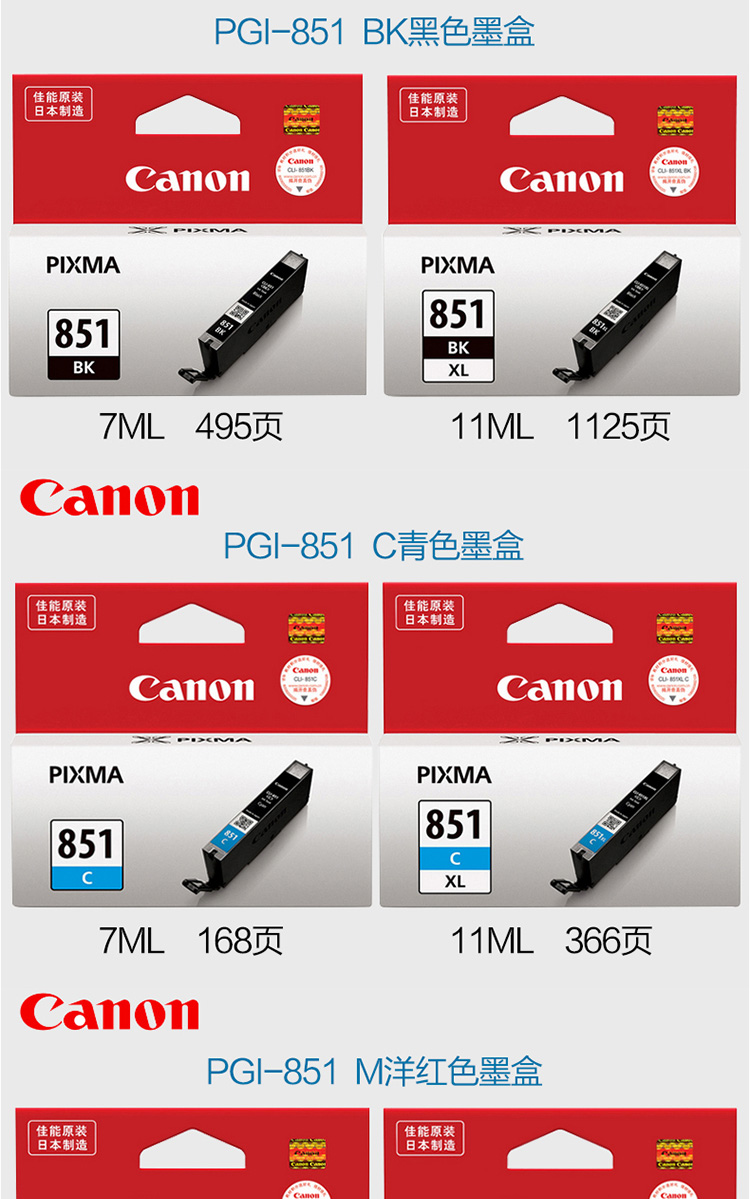 佳能 CLI-851Y 墨盒 7ML 黃色