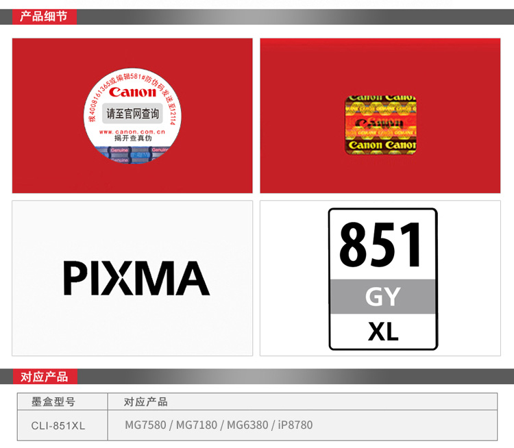 佳能 CLI-851XL M 墨盒 11ML 品紅色