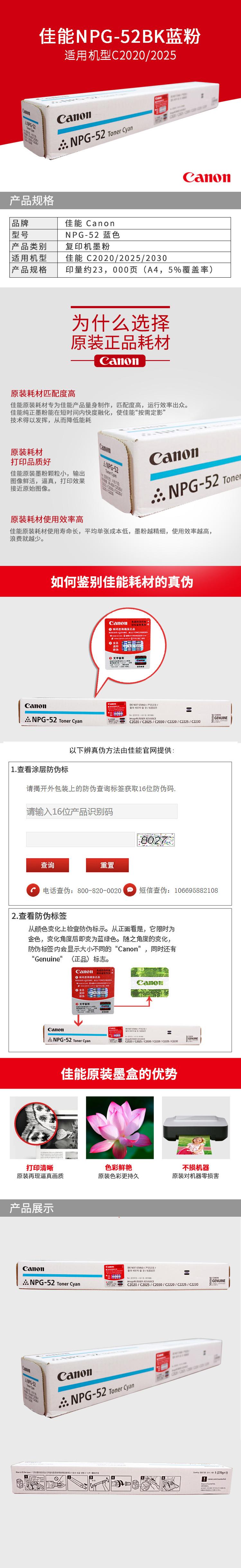 佳能 NPG-52C 墨粉 19000張 青色
