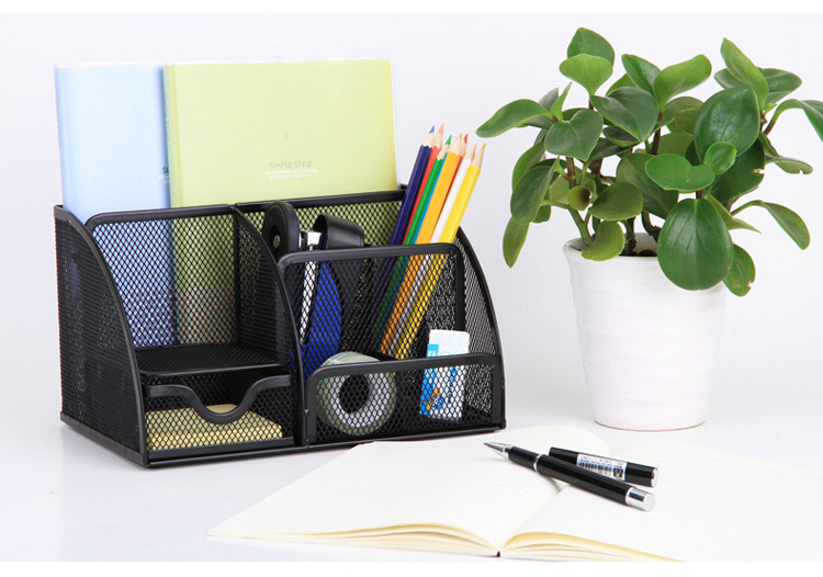 得力 9200 多功能金屬網(wǎng)紋辦公筆座 黑色