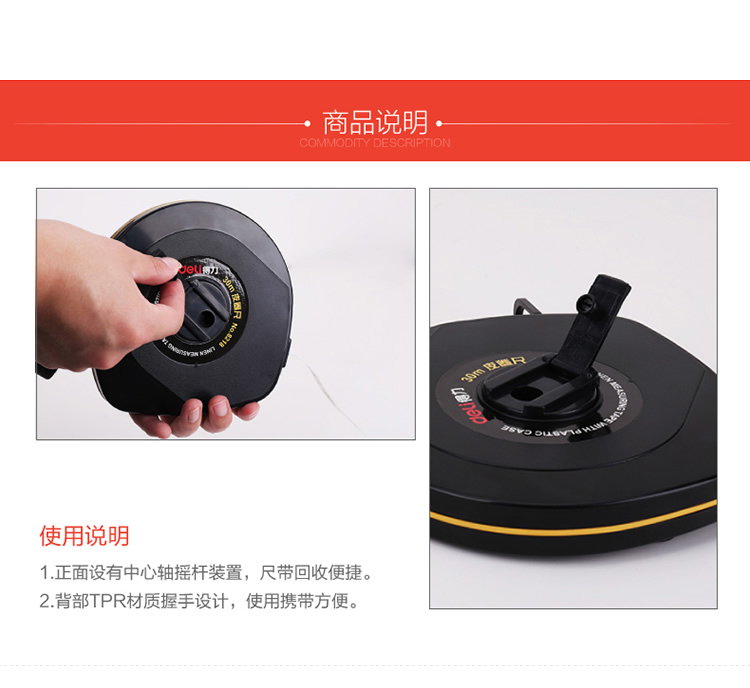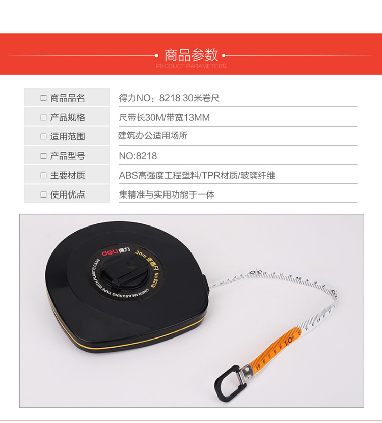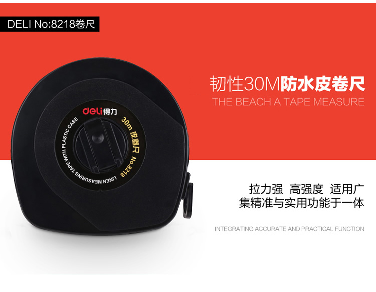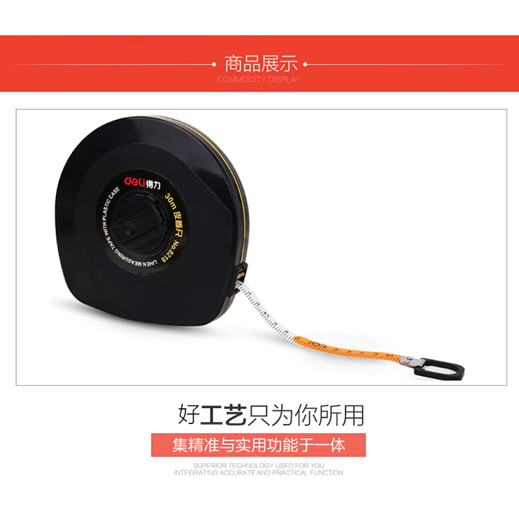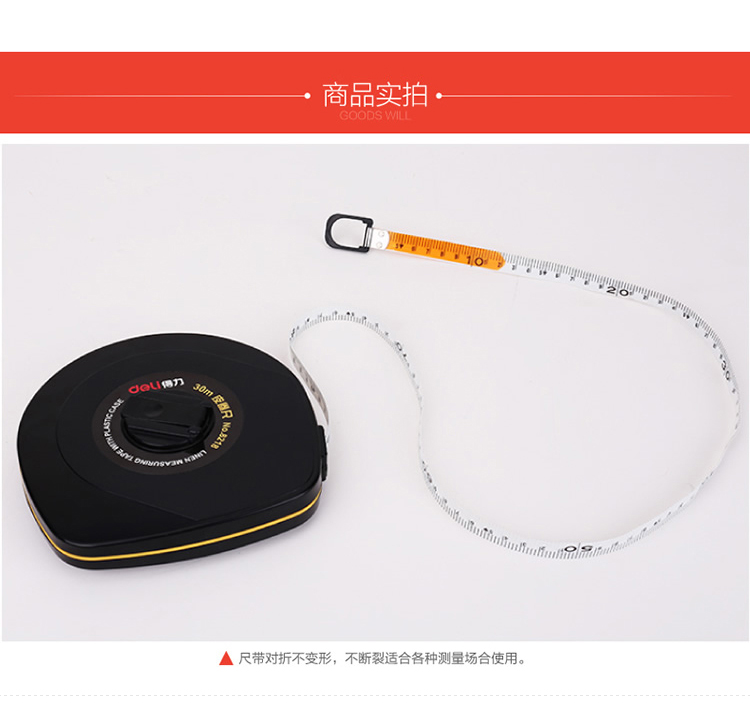 得力 8218 優(yōu)質玻璃釬維測量精準皮卷尺 30米
