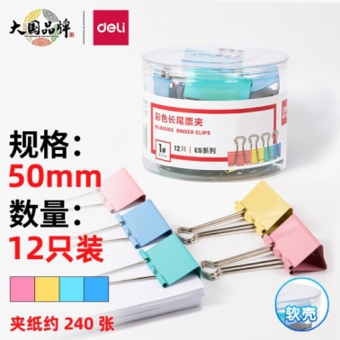 得力 8551ES 長尾票夾 50mm 彩色 12只/筒