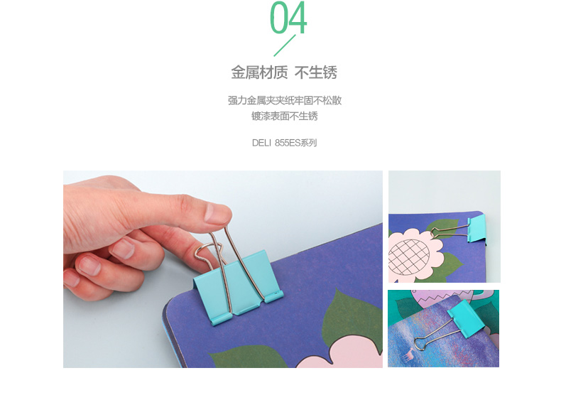 得力 8556ES 長(zhǎng)尾票夾 15mm 彩色 60只/筒