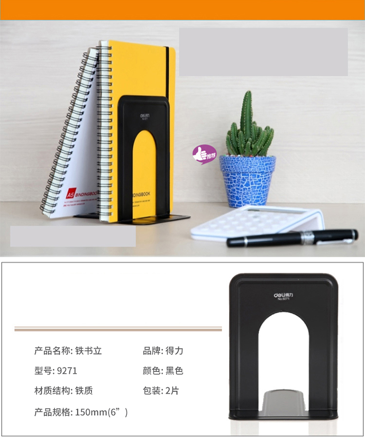 得力 9271 鐵書立 118*150mm 藍(lán)色 2片/付 6寸