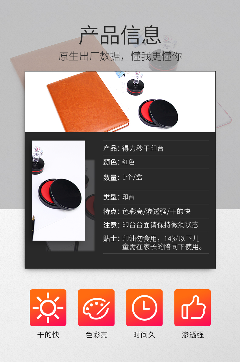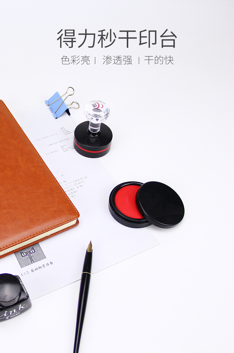 得力 9868 圓形塑殼秒干印臺(tái) 紅色