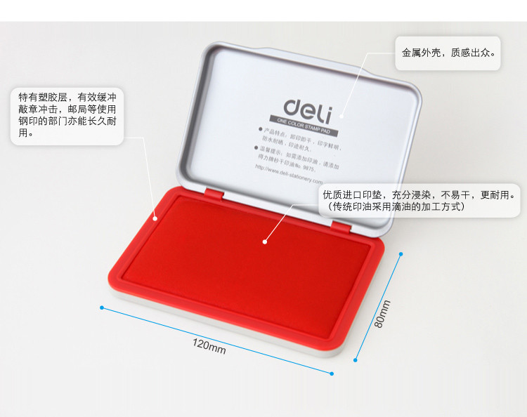 得力 9892 秒干快干印臺(tái) 67*107mm 紅色