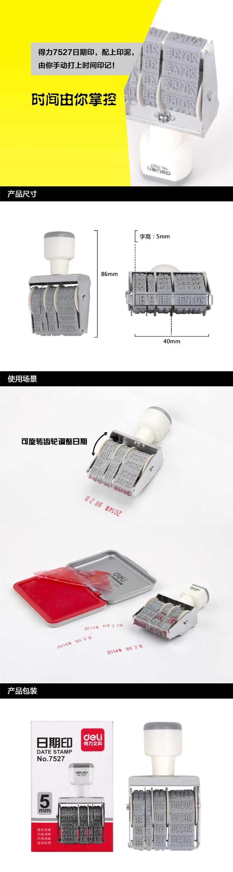 得力 7527 日期印 灰白色