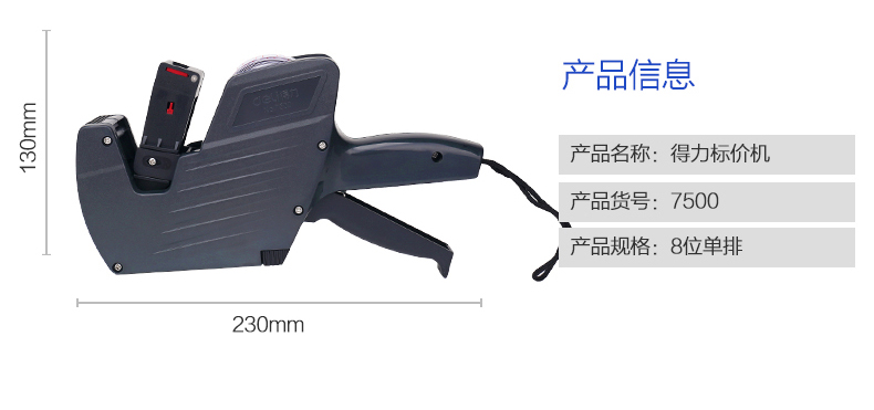 得力 7500 單排8位標價機 灰色