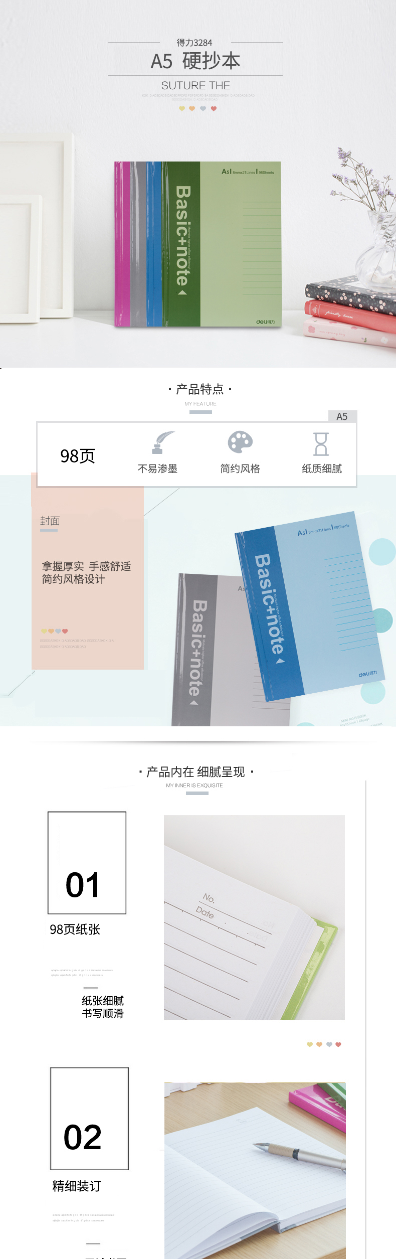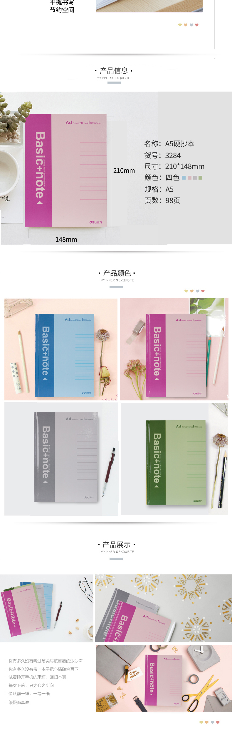 得力 3284 硬抄本 A5 混色 96頁(yè)