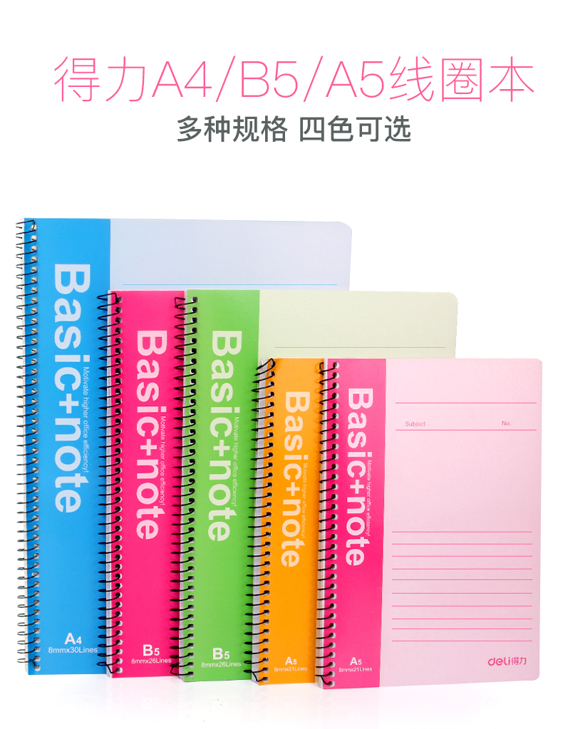 得力 7694 螺旋裝訂本 B5 混色 80張