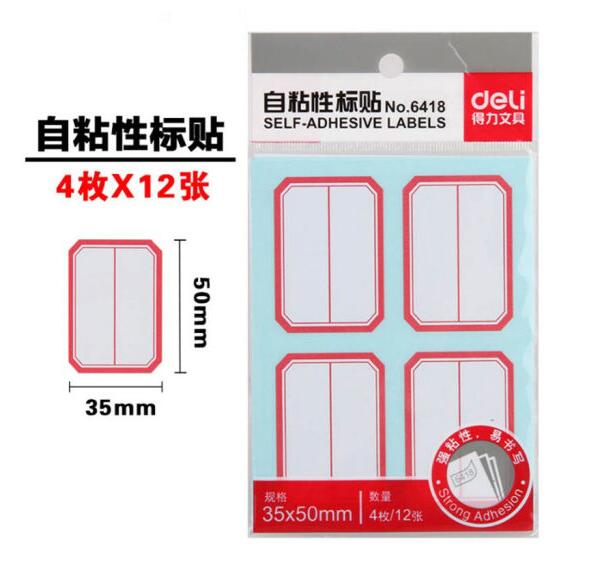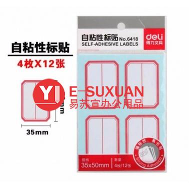 得力 6418 自粘性標(biāo)貼 35*50mm 紅框