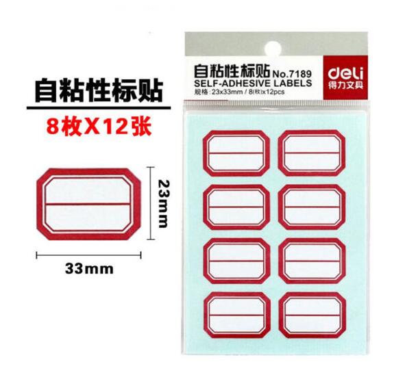 得力 7189 自粘性標(biāo)貼 23*33mm 紅框