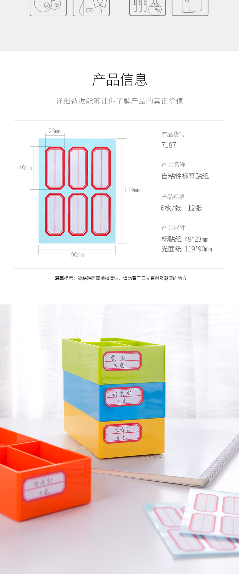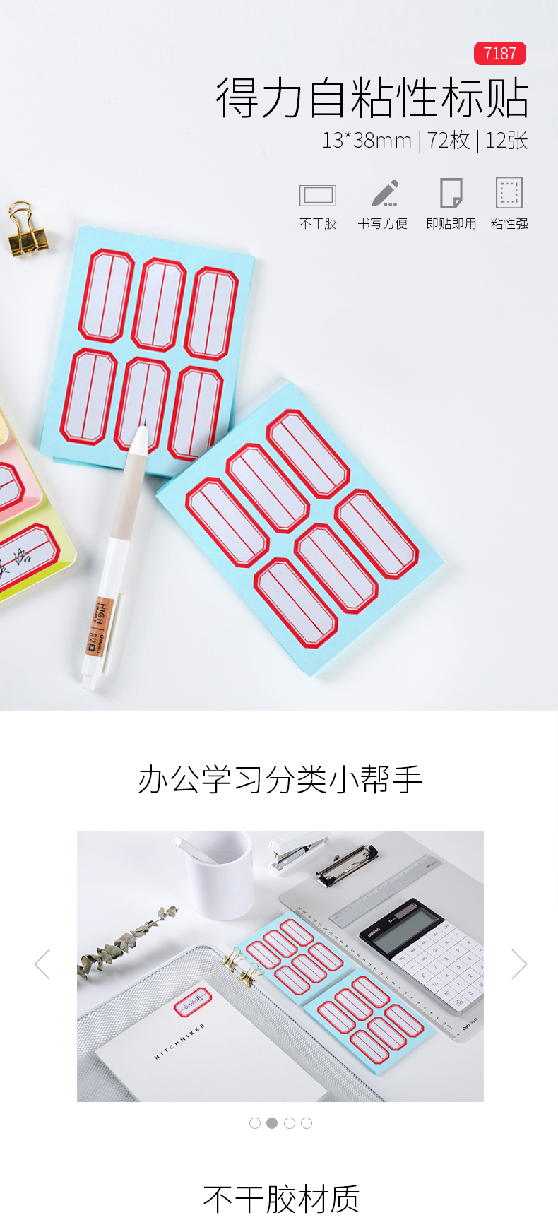 得力 7187 自粘性標貼 23*49mm 紅框
