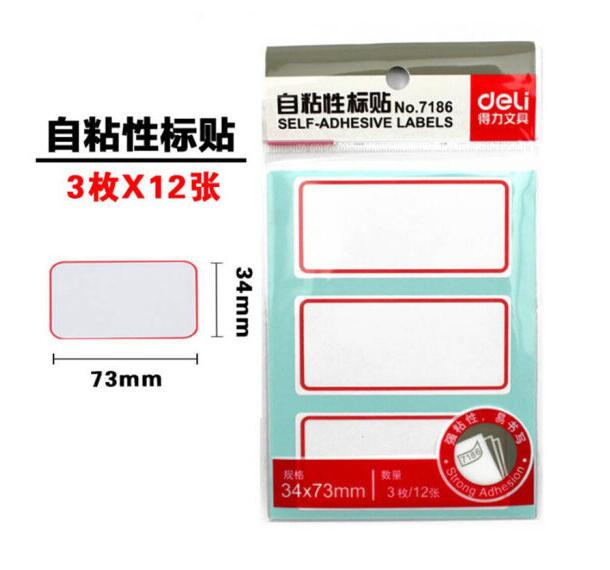 得力 7186 自粘性標(biāo)貼 34*73mm 紅框
