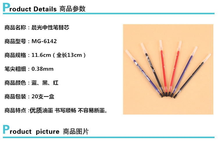 晨光 MG6142 香味中性筆芯 0.38mm 紅色 20支/盒