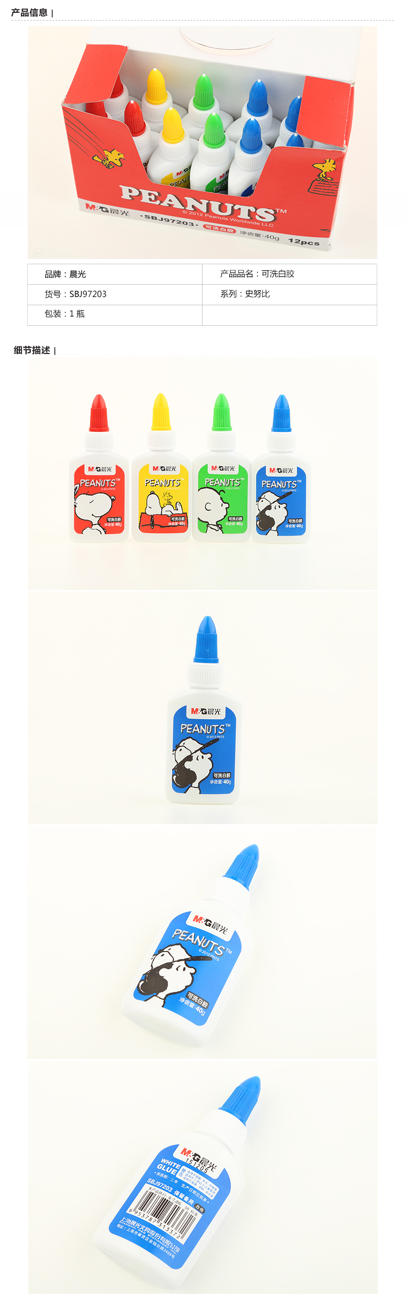 晨光史努比 SBJ97203 可水洗白膠 40克