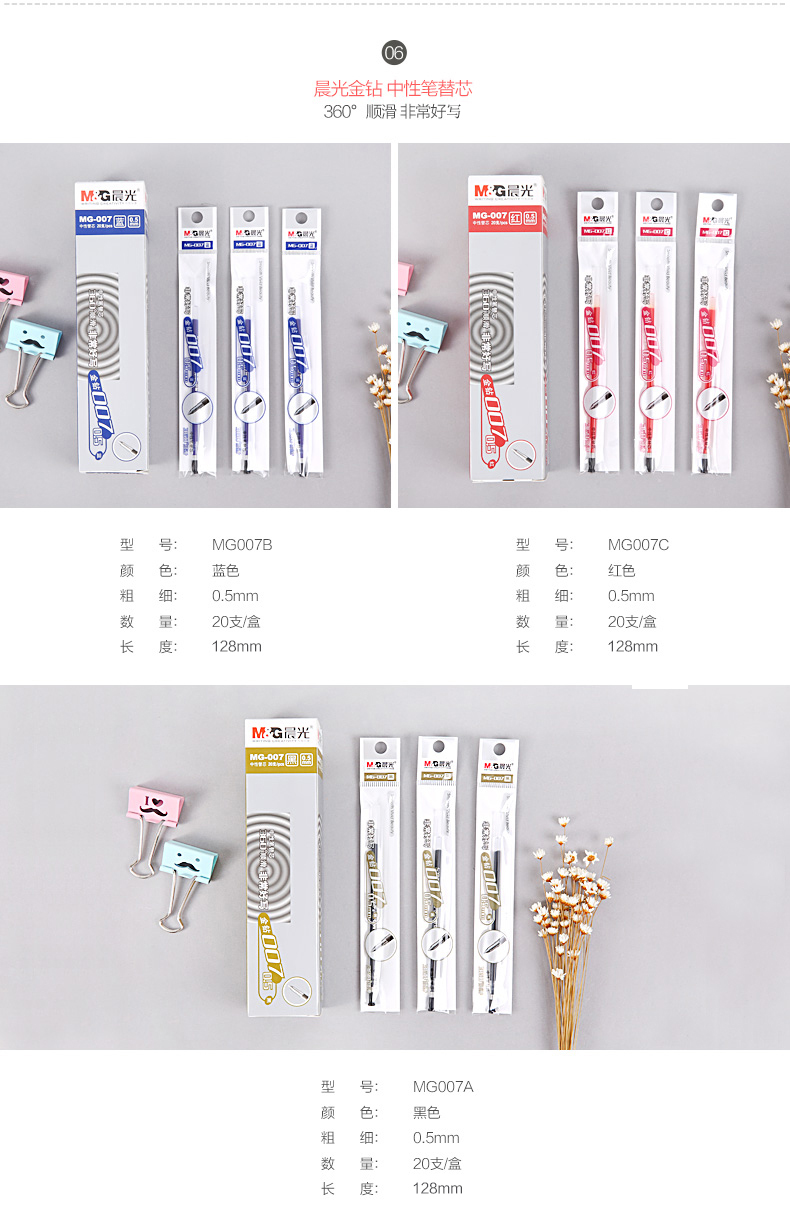 晨光 MG-007 鉆石中性筆筆芯 0.5mm 黑色 20支/盒