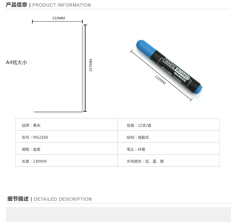 晨光 MG-2160 易擦型白板筆 藍色 12支/盒