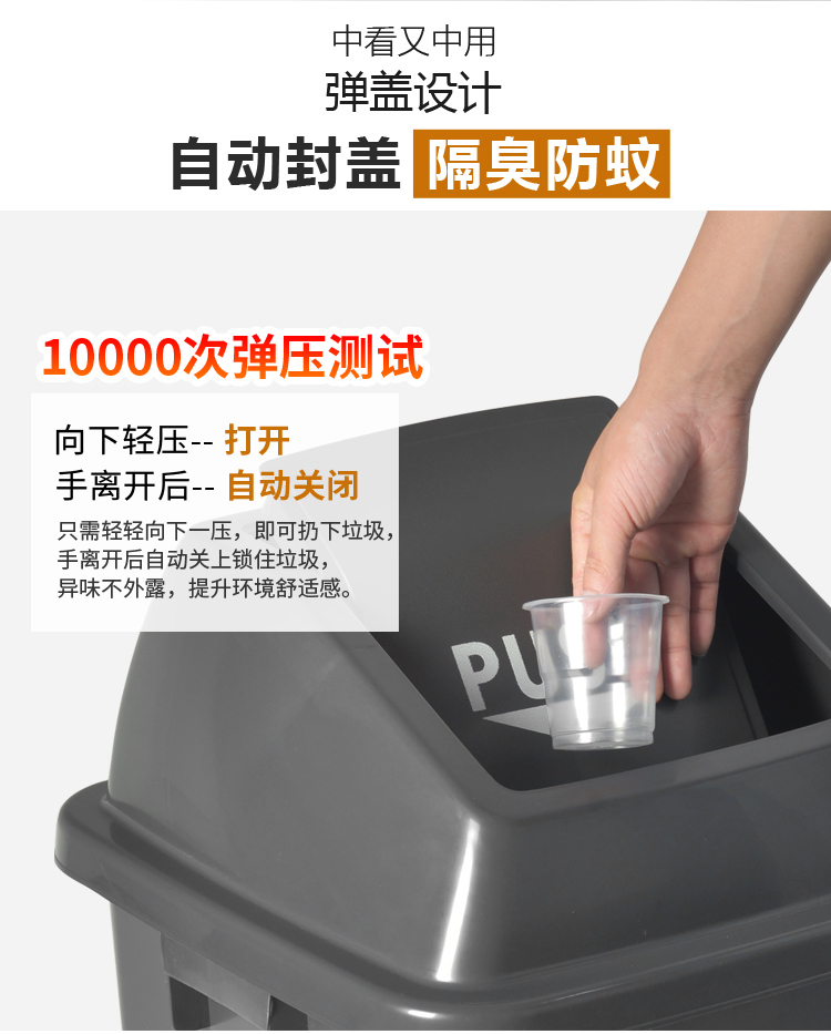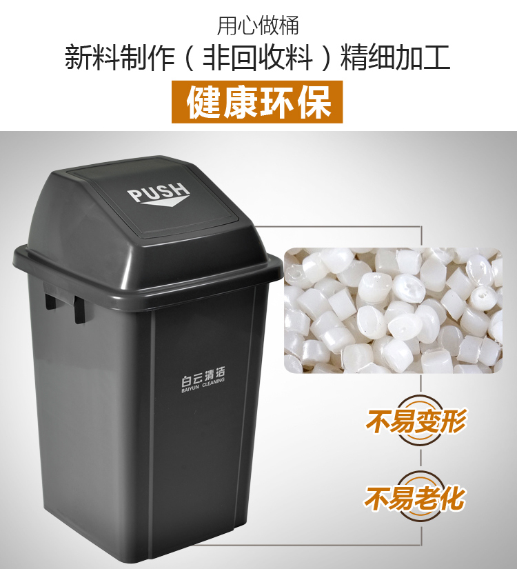 白云 AF07312 搖蓋式清潔垃圾桶 60L 深灰色
