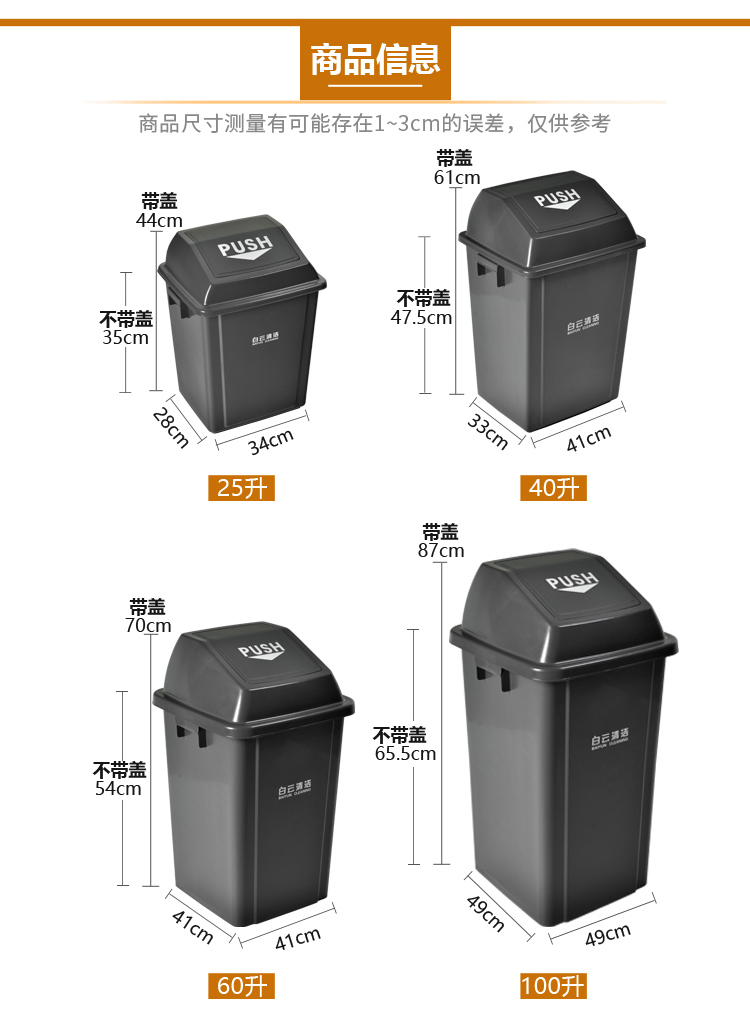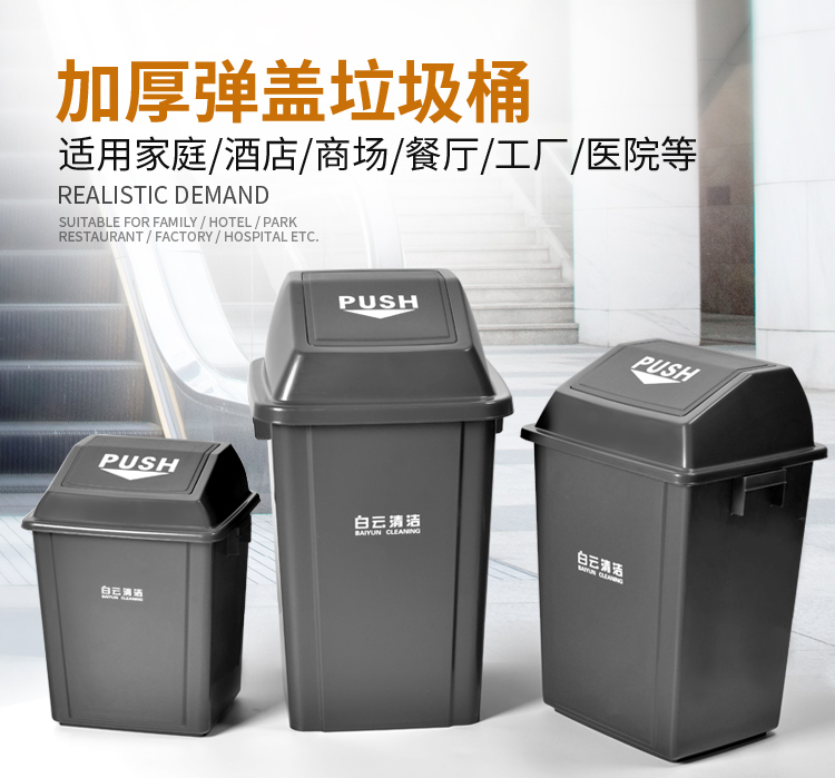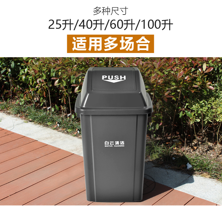 白云 AF07313 搖蓋式清潔垃圾桶 100L 深灰色