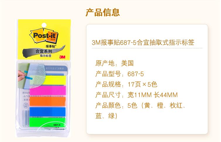 3M報事貼687-5合宜抽取式指示標簽 11mm*44mm
