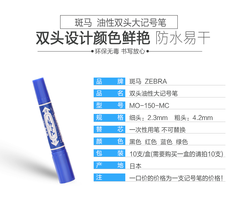 斑馬 MO-150-MC-BL 大雙頭油性記號筆 藍(lán)色 10支/盒