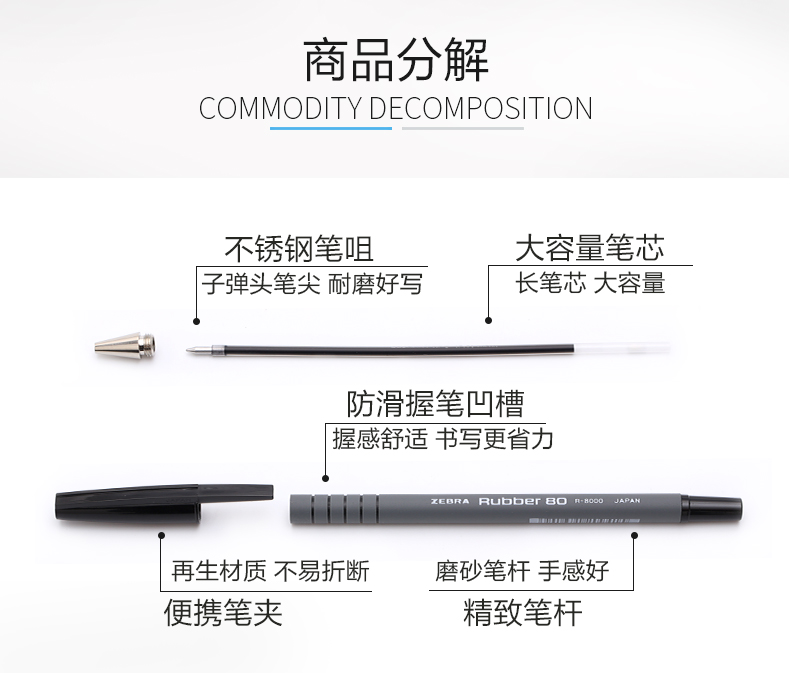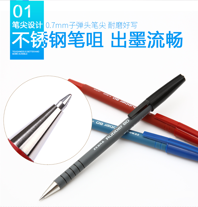斑馬 R-8000 橡膠桿圓珠筆原子筆 0.7mm 黑色 10支/盒