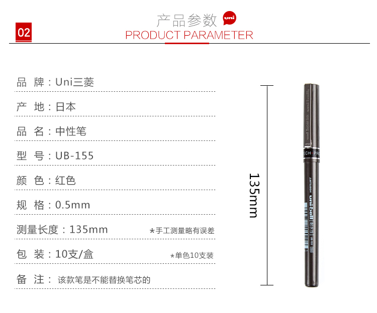 三菱 UB-155 直液式走珠筆 0.5mm 黑色 10支/盒