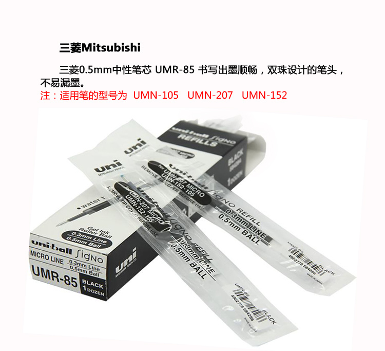 三菱 UMR-85 中性筆芯 0.5mm 黑色 12支/盒