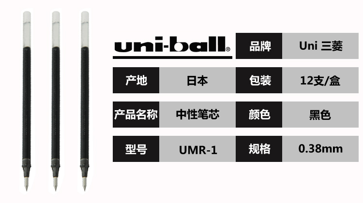 三菱 UMR-1 中性筆芯 0.38mm 紅色 12支/盒