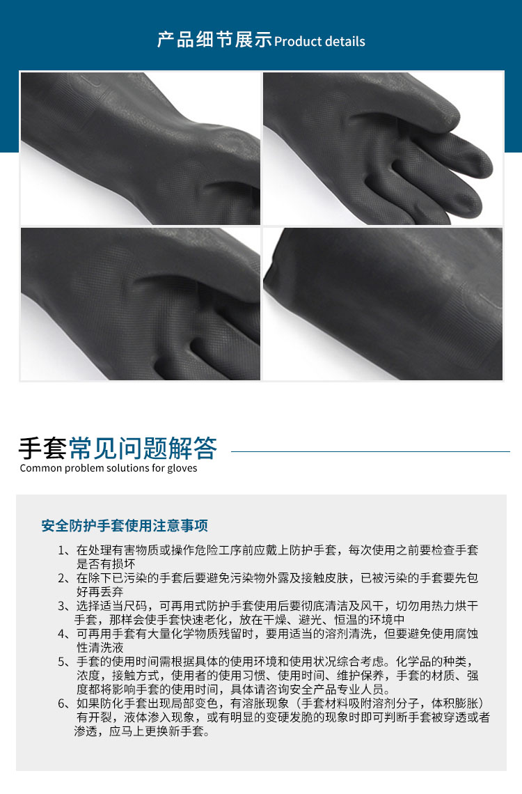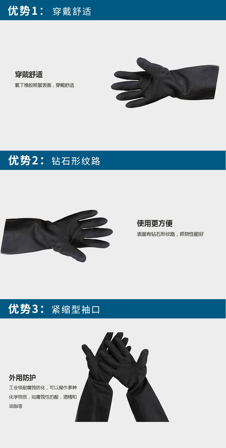 霍尼韋爾 2095025 氯丁橡膠防化手套 加長(zhǎng)版 黑色 07碼