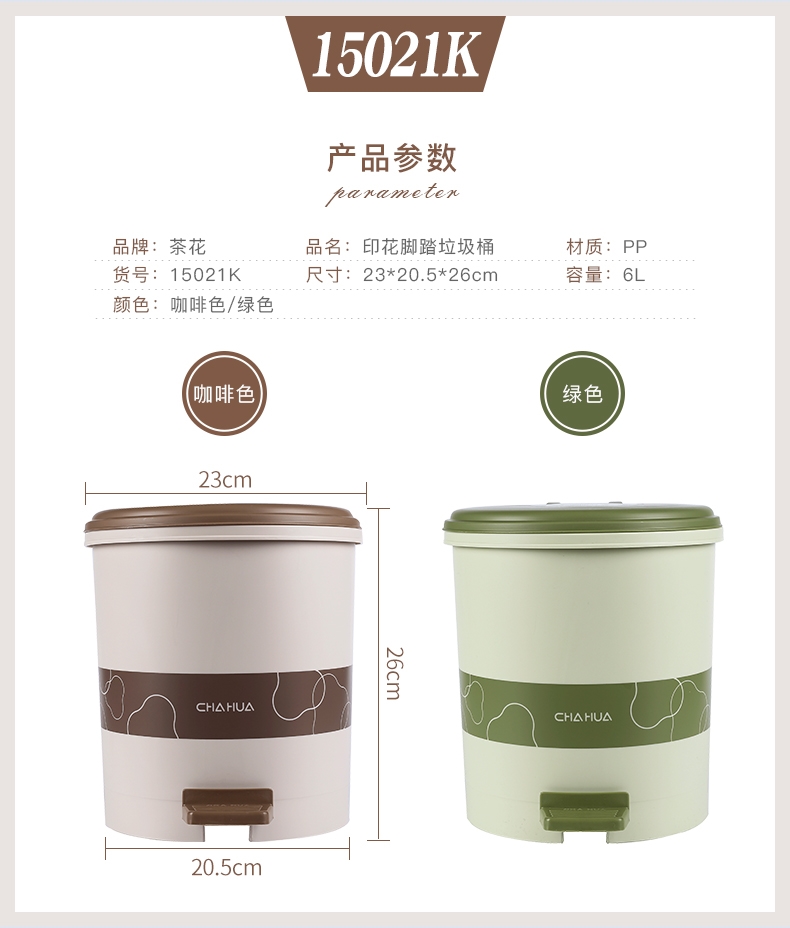 茶花 15021k 腳踏圓形垃圾桶 6L