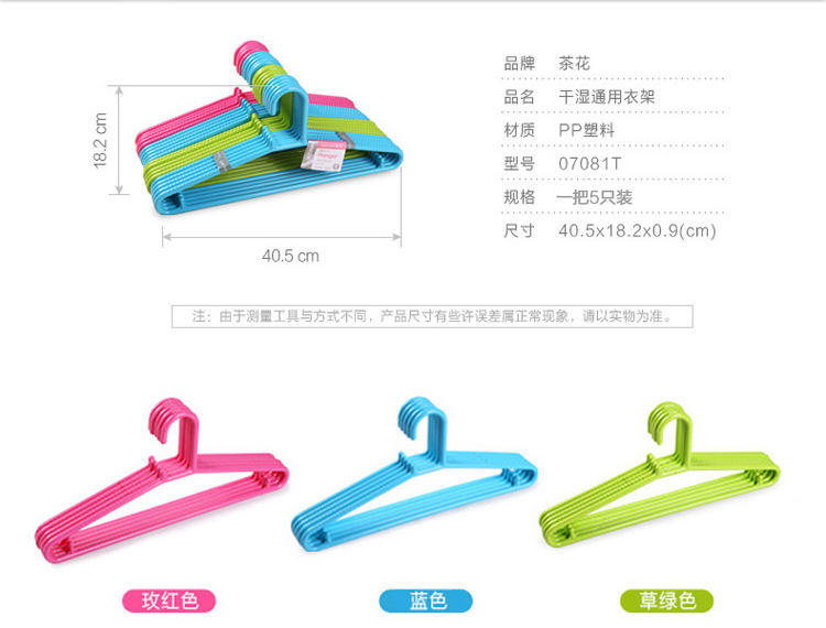 茶花 07081T 防滑塑料衣架 5個/組