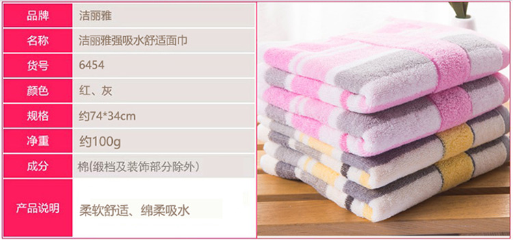 潔麗雅 6454 純棉強吸水舒適面巾 74*34cm