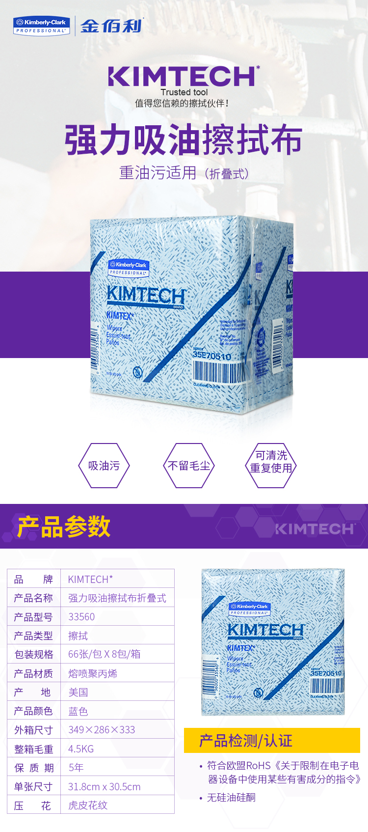 金佰利 33560 金特工業(yè)吸油布 8包/箱
