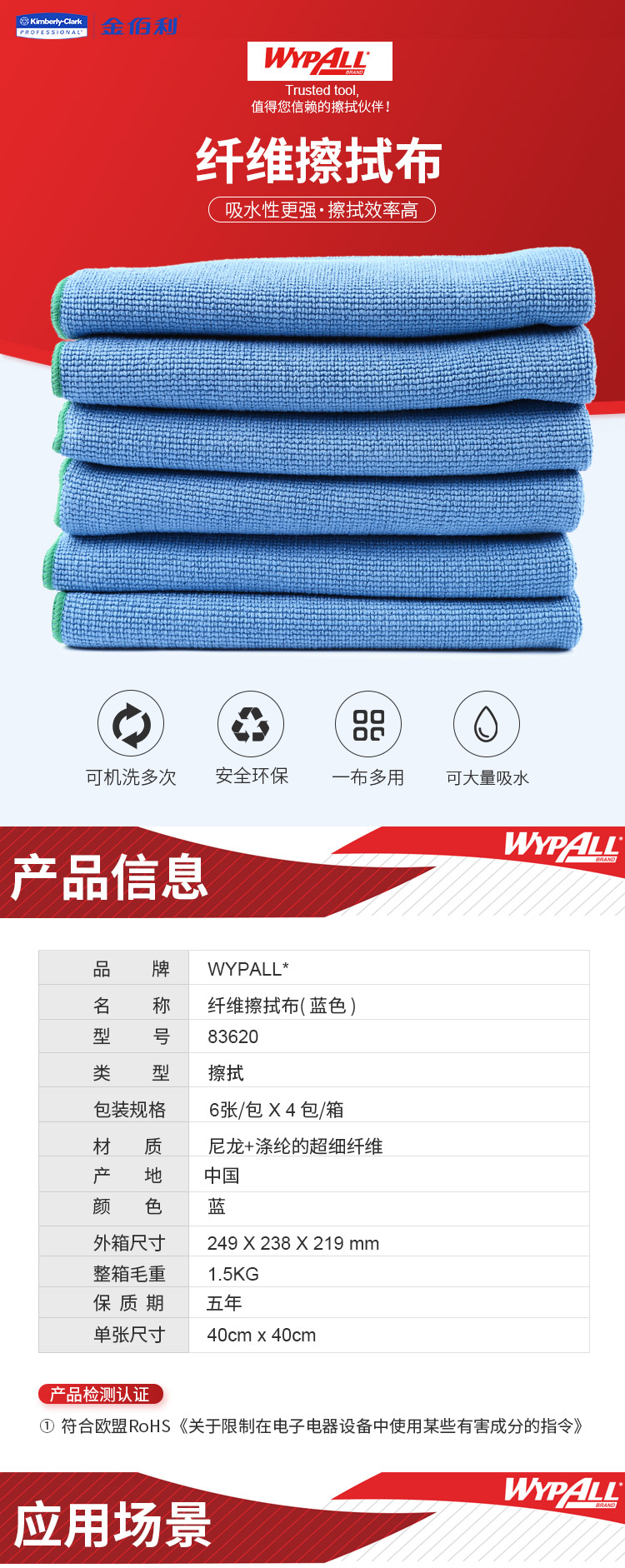 金佰利 83620 勁拭超細纖維擦拭布 藍色 6條/包 4包/箱