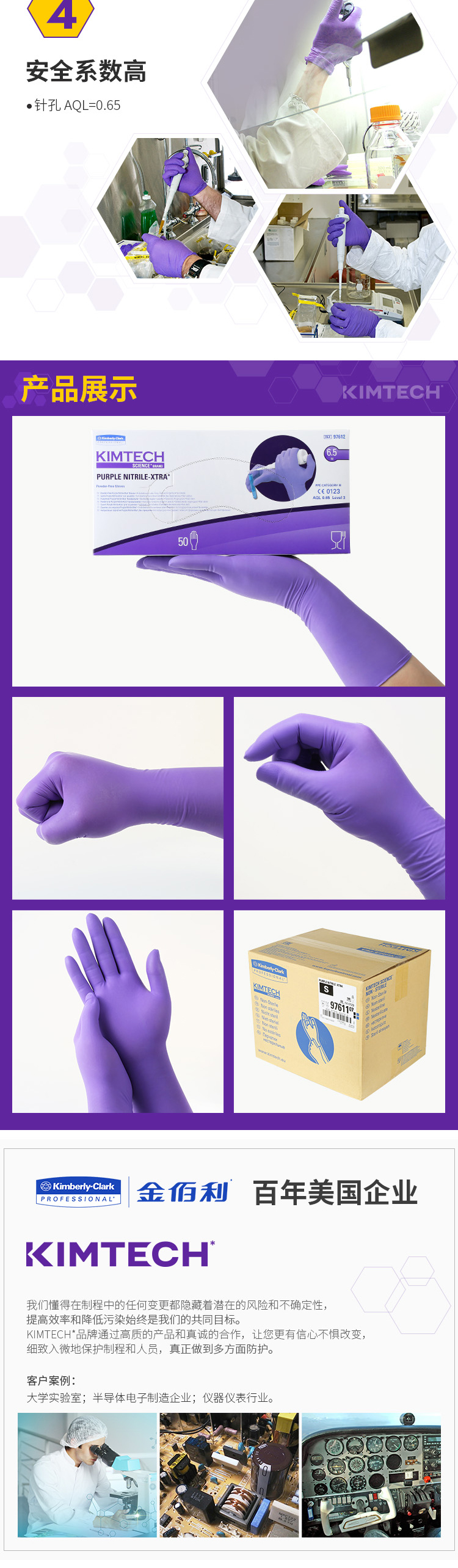 金佰利 97612 加長(zhǎng)丁腈手套 G20 中號(hào) 50只/盒 紫色
