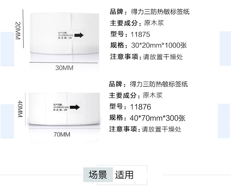 得力 11874 萊茵河長效三防熱敏標簽紙 50*30mm 白色 1000張/卷