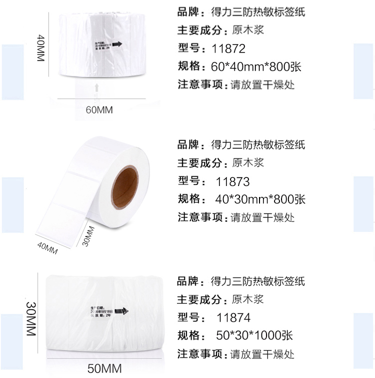 得力 11875 萊茵河長(zhǎng)效三防熱敏標(biāo)簽紙 30*20mm 白色 1000張/卷