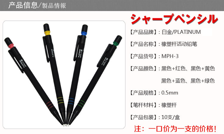 白金 MPH-3 橡膠桿活動(dòng)鉛筆 0.5mm
