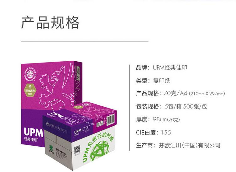 UPM經(jīng)典佳印 70g 復(fù)印紙 A4 白色 500張/包 5包/箱
