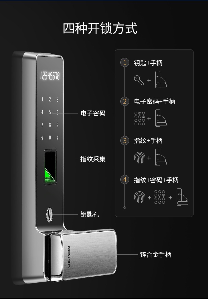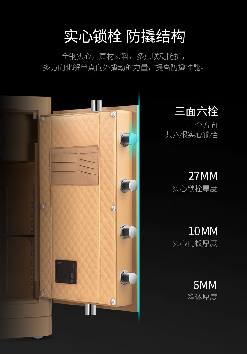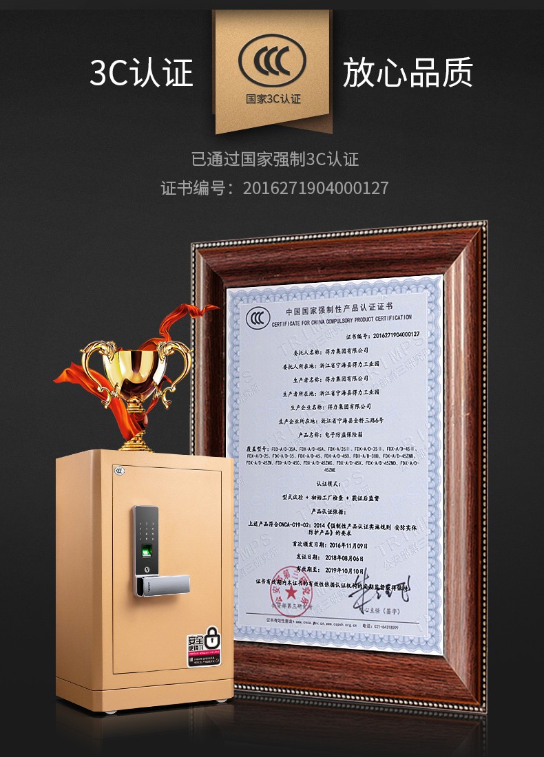 得力(deli)4115 指紋密碼雙重鎖控保險箱 高52cm 金色