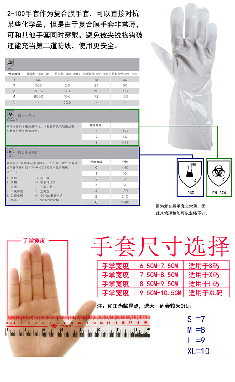 安思爾Ansell 2-100 復(fù)合膜防化手套 8碼 12副/打 6打/箱