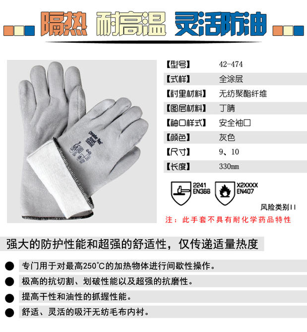 安思爾 Ansell 42-474 防高溫手套 9碼 12副/打 6打/箱