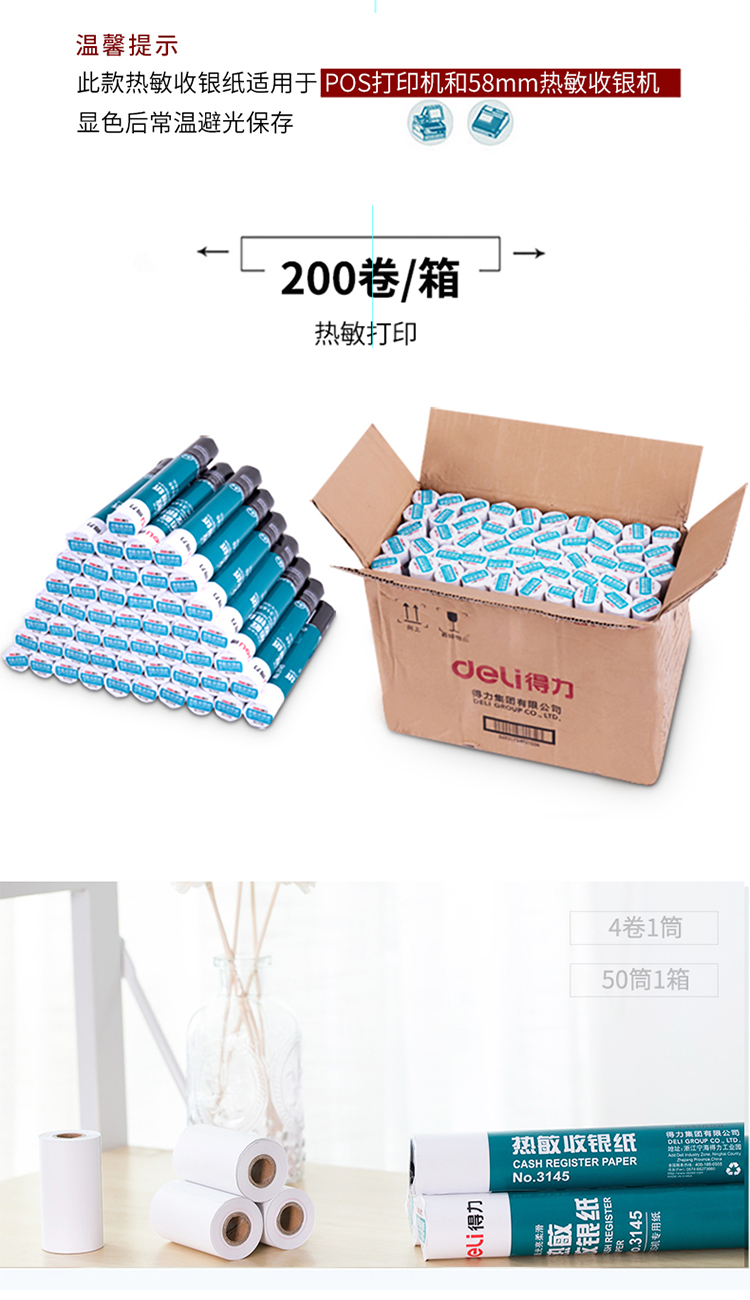 得力 3145 多瑙河熱敏收銀紙 57mm*30mm 白色 4卷/筒