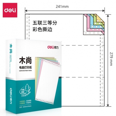 得力木尚 M241-5 三等份彩色撕邊電腦打印紙 800頁