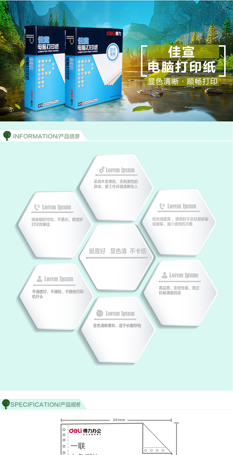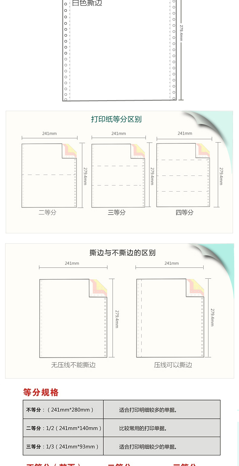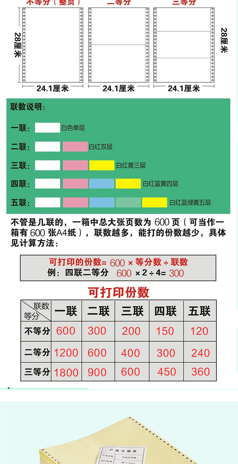 得力佳宣 JS241-5 二等份彩色撕邊電腦打印紙 600頁
