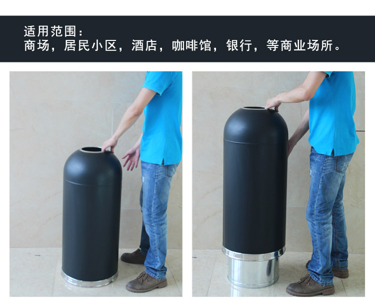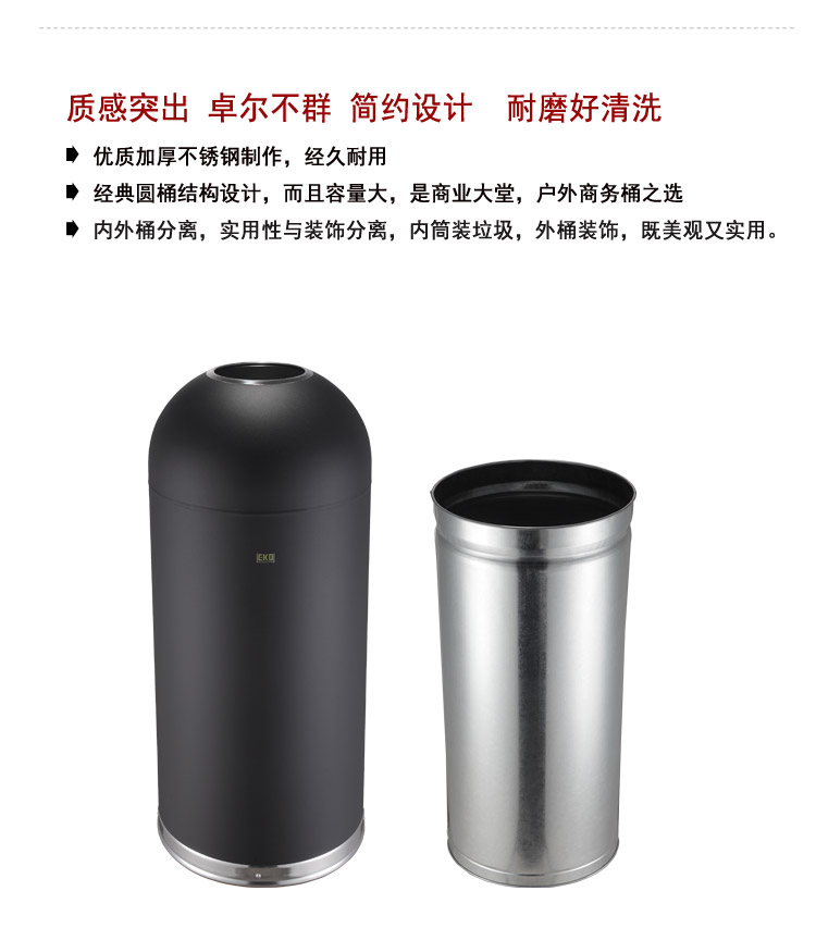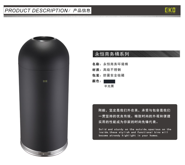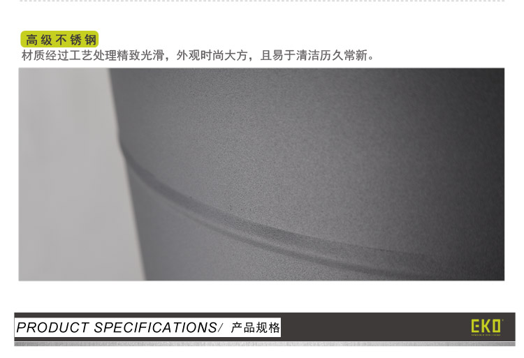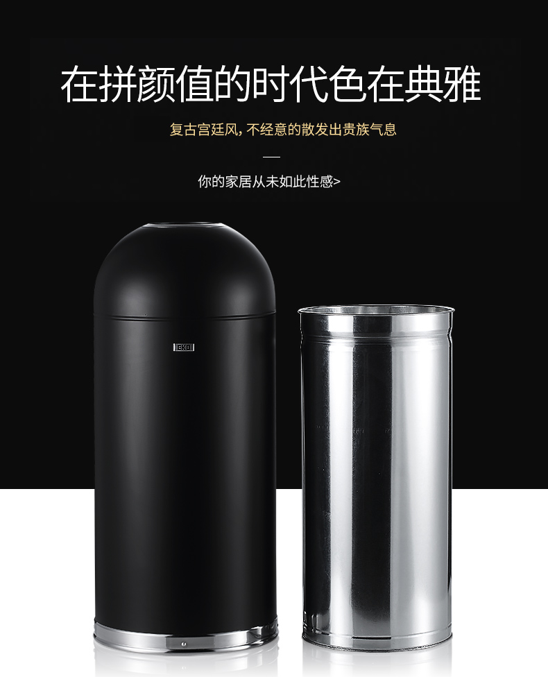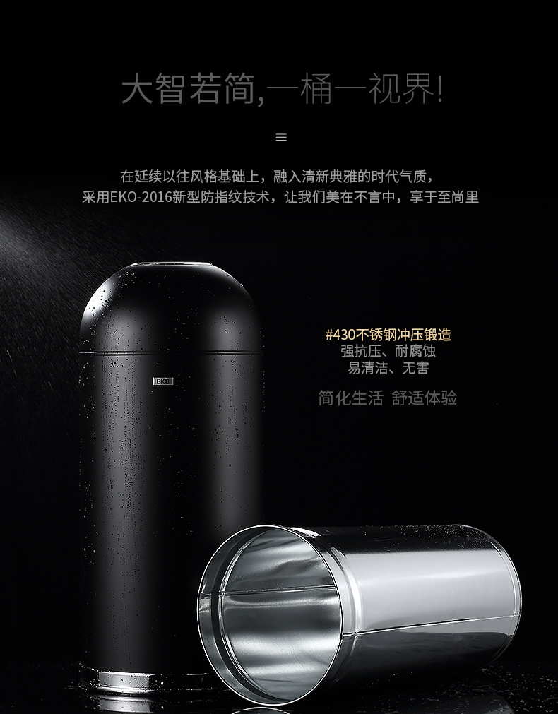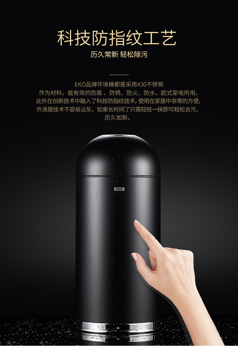 宜可EKO 9639 圓形不銹鋼垃圾桶 52L 黑色