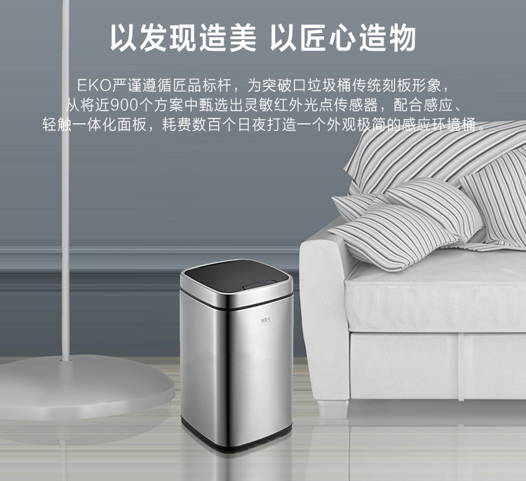 宜可EKO 9288 智能感應垃圾桶 12L 砂鋼